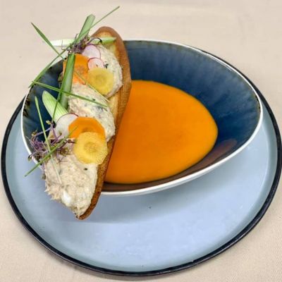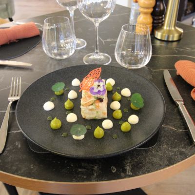 Le chef de cuisine, Guillaume, et sa brigade élaborent une cuisine dans l'air du temps, moderne et créative tout en respectant le fait maison et les produits locaux.